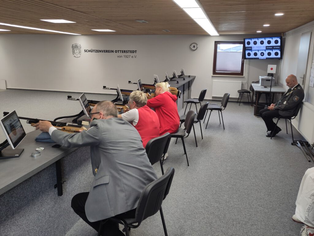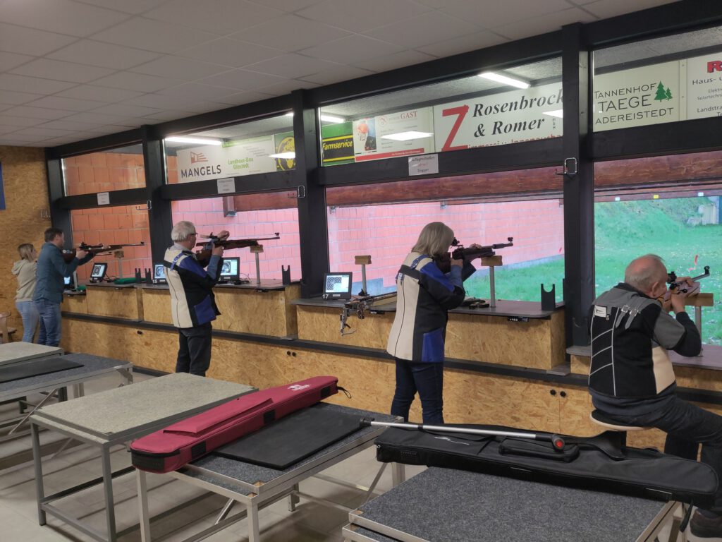 Heute fand die zweite Auflage des Vergleichsschießens mit dem Schützenverein Reeßum statt. Ähnlich wie das jährliche Vergleichsschießen mit dem Ottersberger Schützenkorps im Herbst wechseln wir uns hier mit dem Austragungsort ab. Letztes Jahr bei der ersten Auflage waren wir zu Gast in Reeßum, dieses Jahr waren wir die Gastgeber. Das Schießen ist in der Disziplin LG Nagel sportlich, wie man hier sieht: